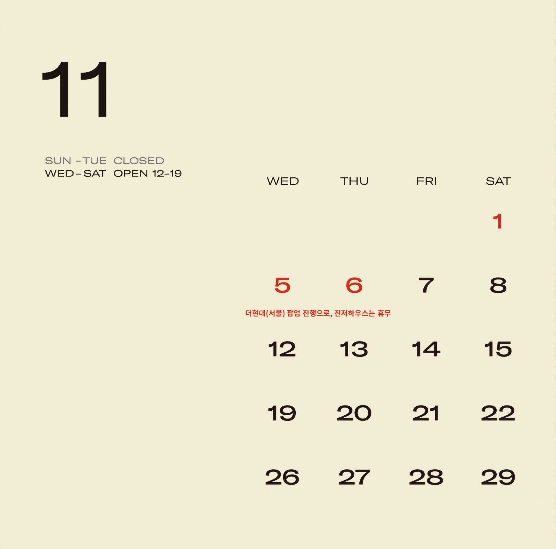 안녕하세요. 진저아이웨어 입니다. 2025년 11월의 진저하우스 영업시간 안내드립니다.